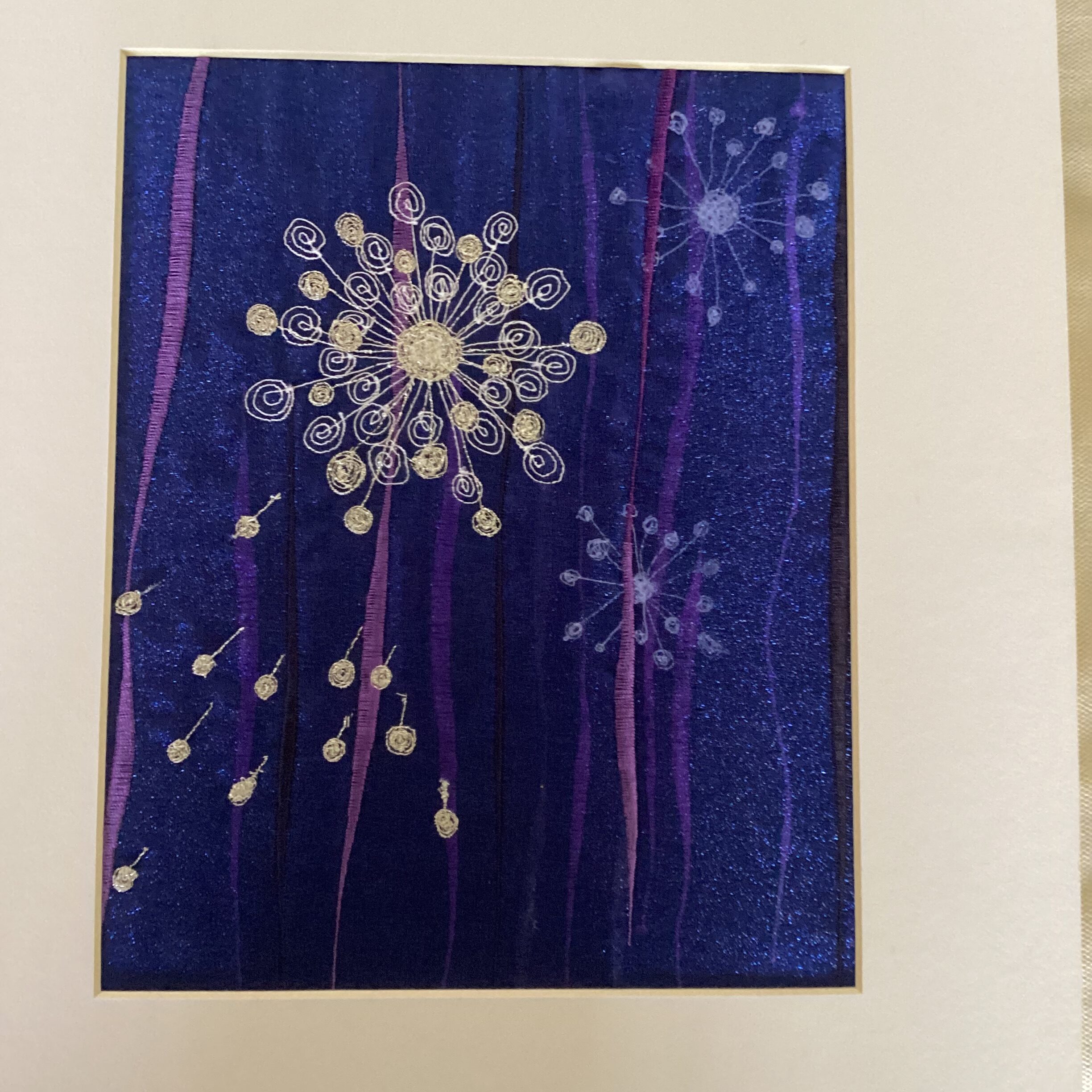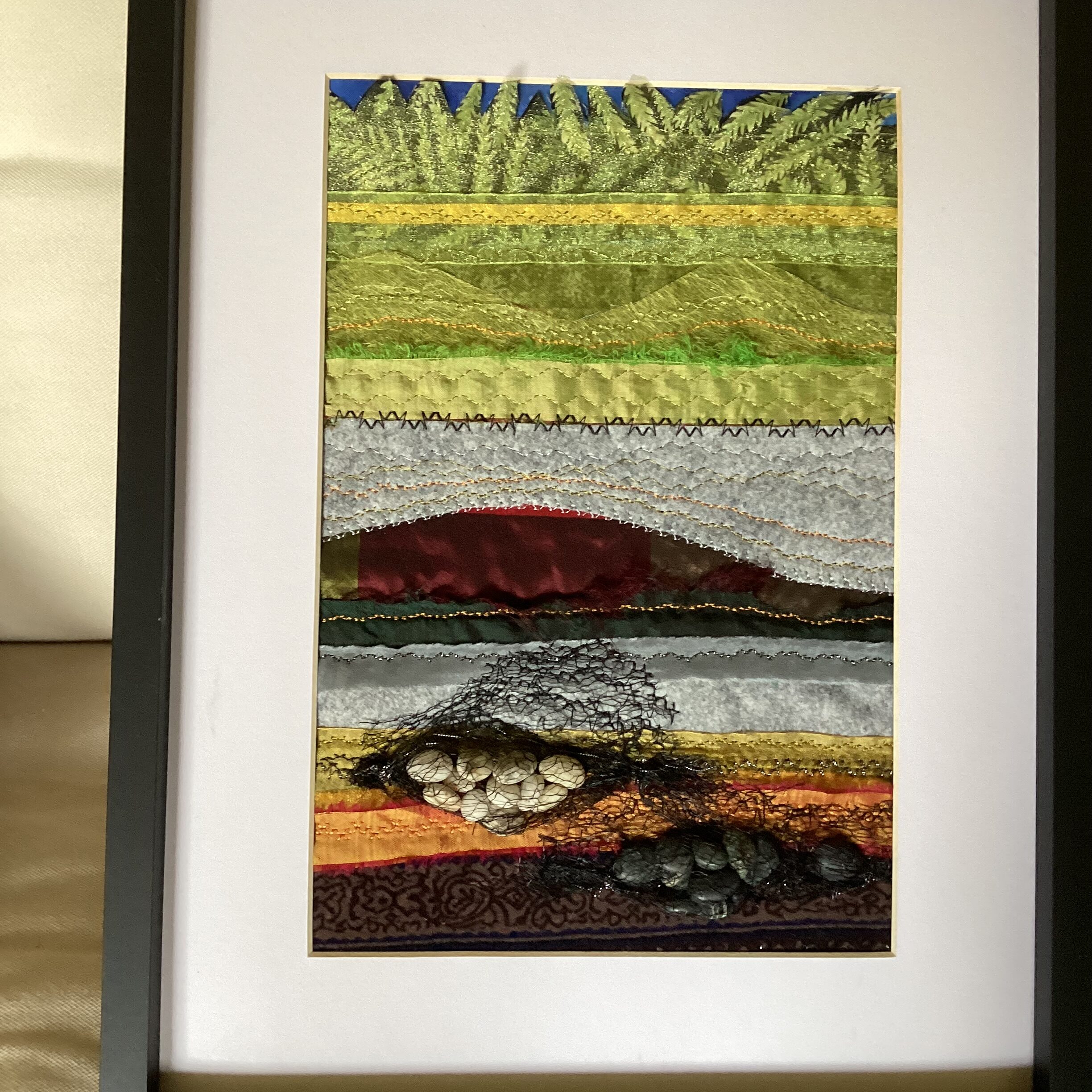 She uses as many interesting fabrics and threads as possible to add interest and depth to her work which is based on the local natural places around Cumbria.